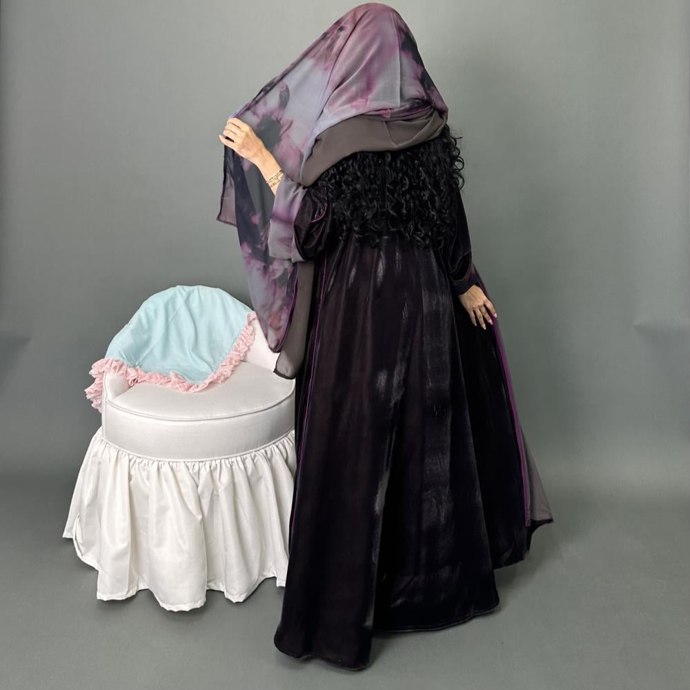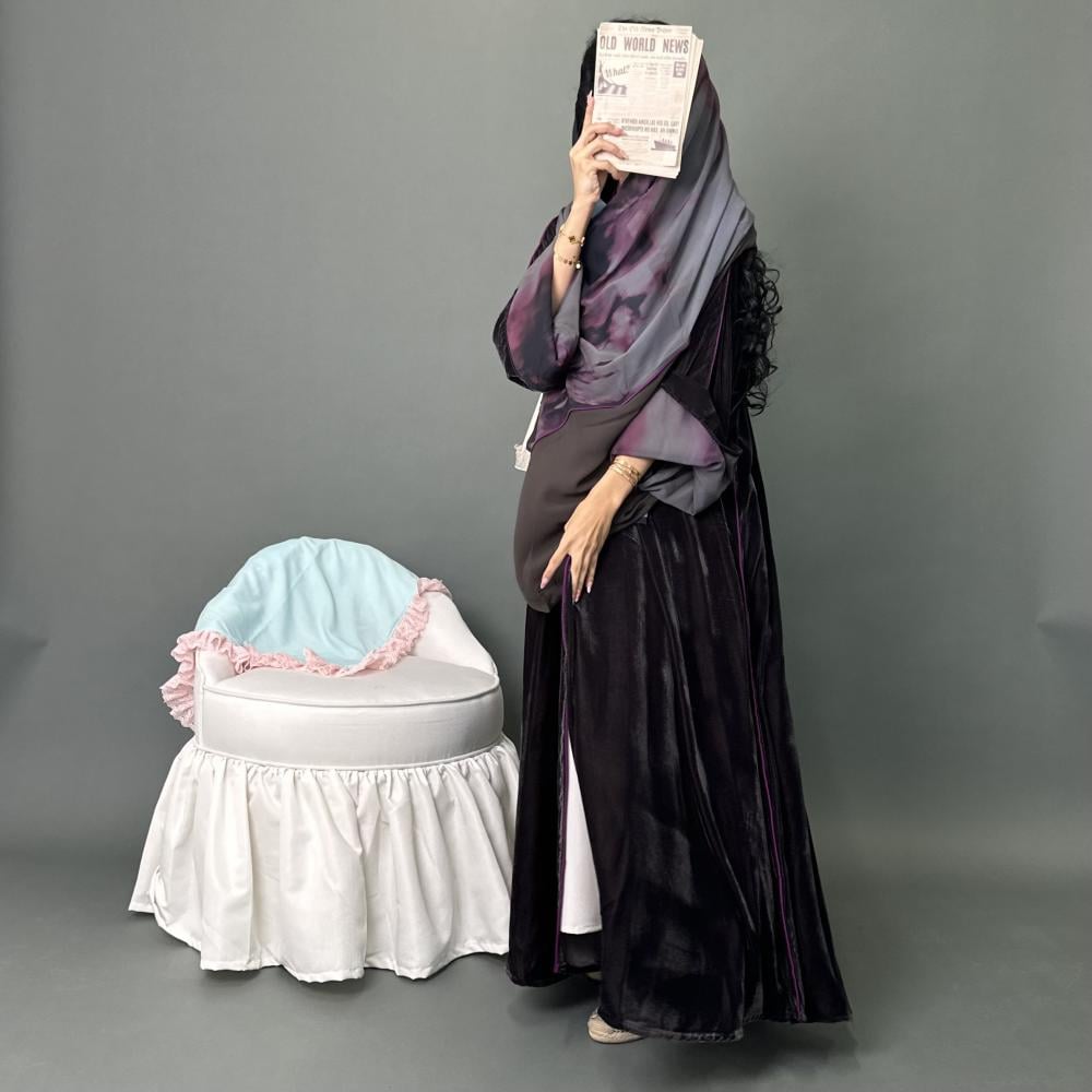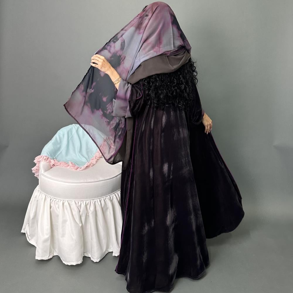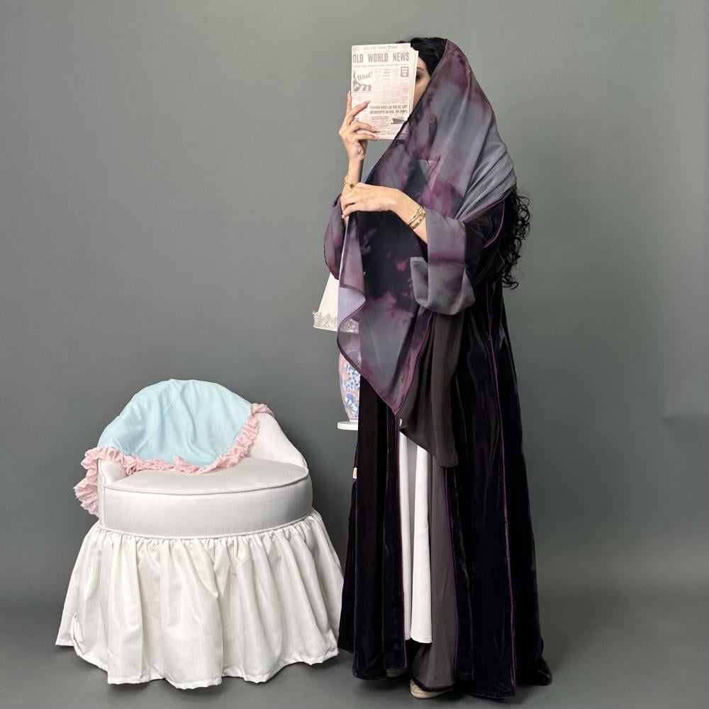 قماش مخمل كوري رمادي | الكم سفطه شيفون مموج " غير مثبته " | قيطان كامل العبايه | الطرحه شيفون بقيطان