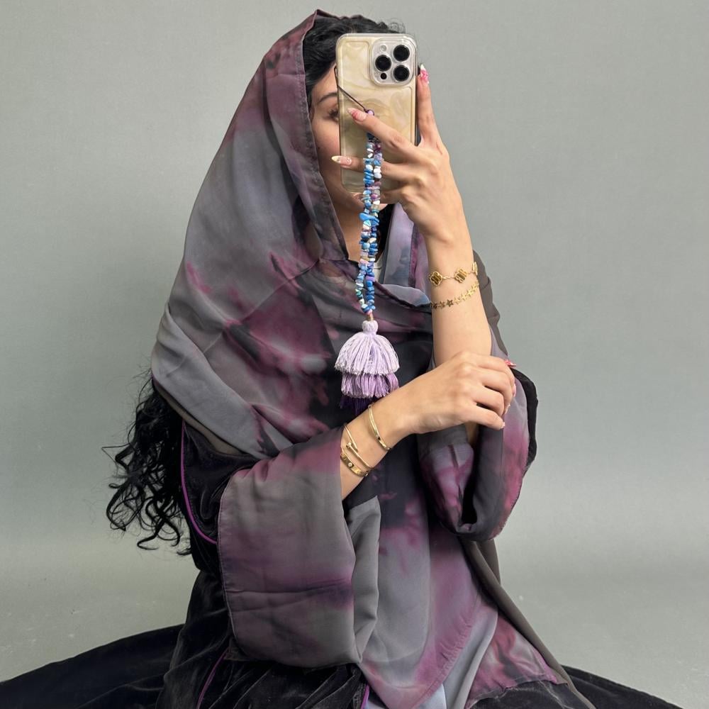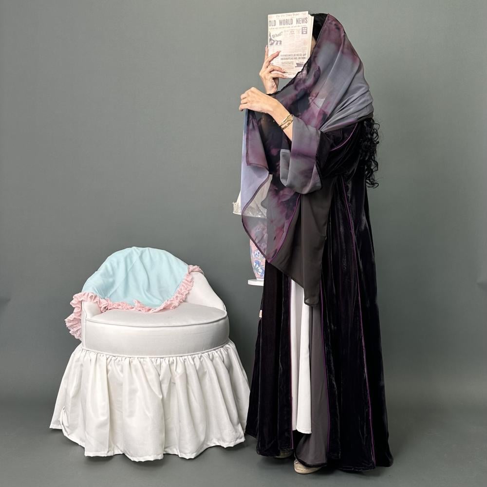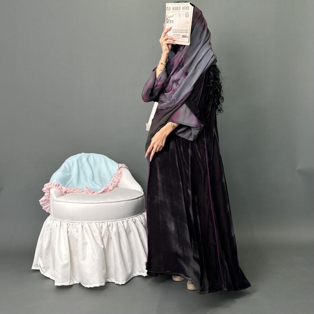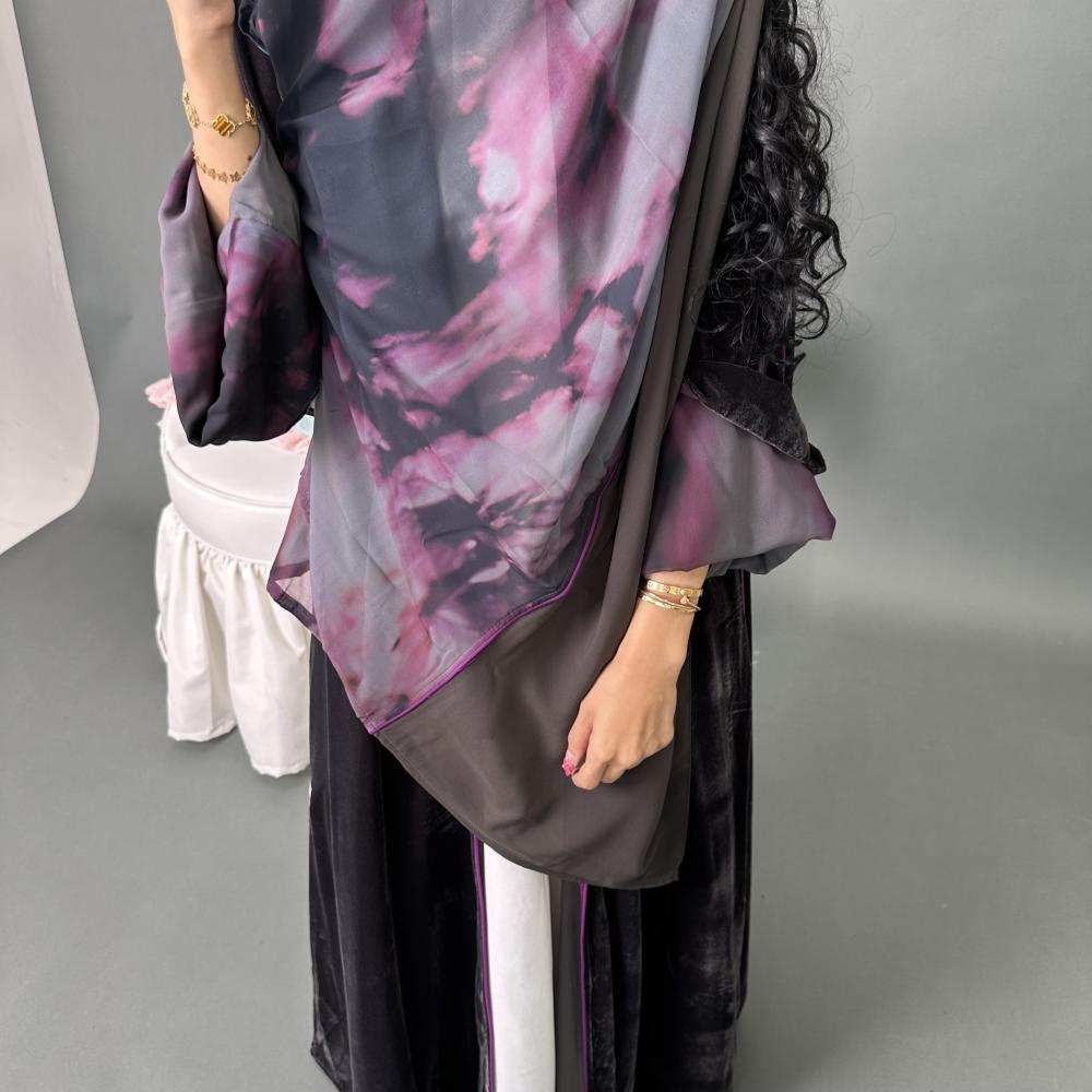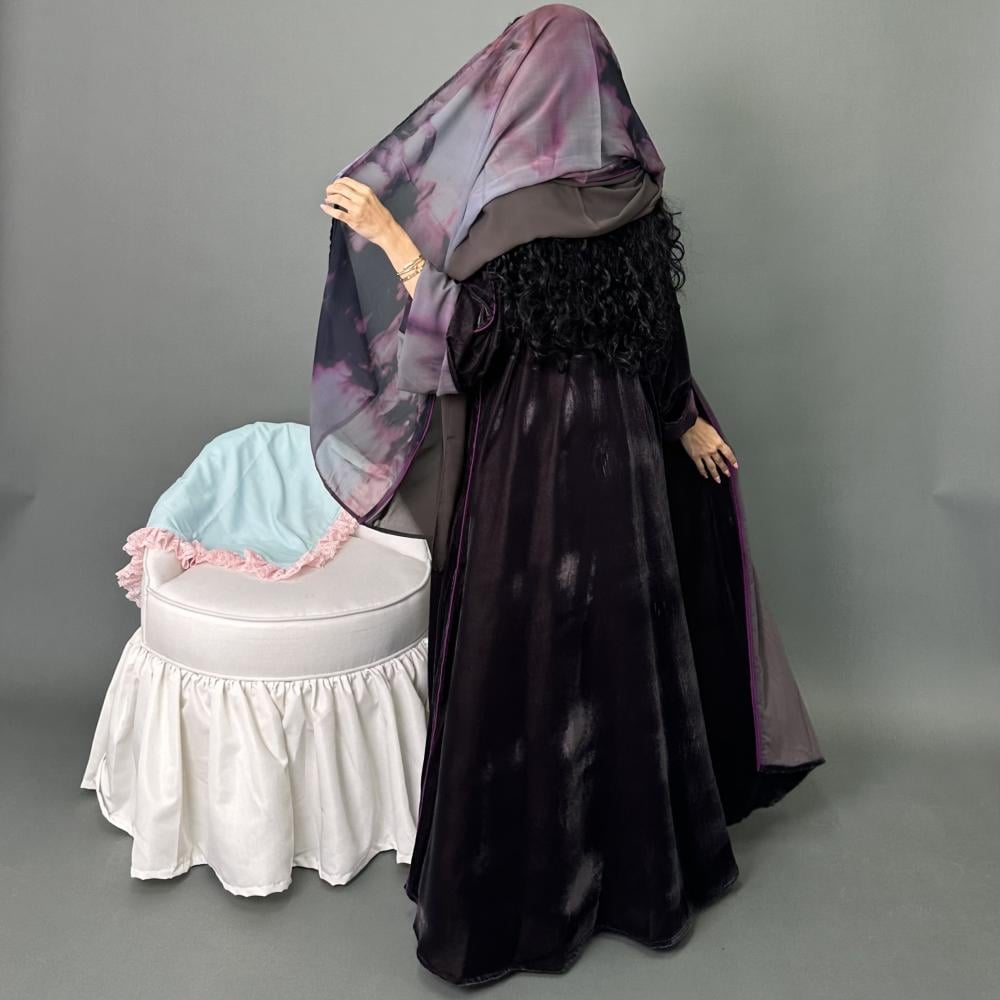 قماش مخمل كوري رمادي | الكم سفطه شيفون مموج " غير مثبته " | قيطان كامل العبايه | الطرحه شيفون بقيطان