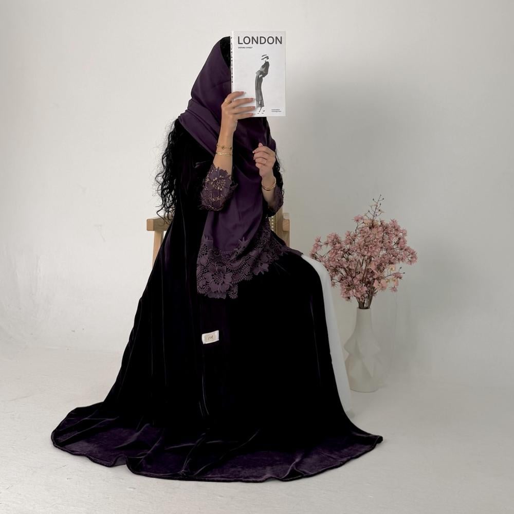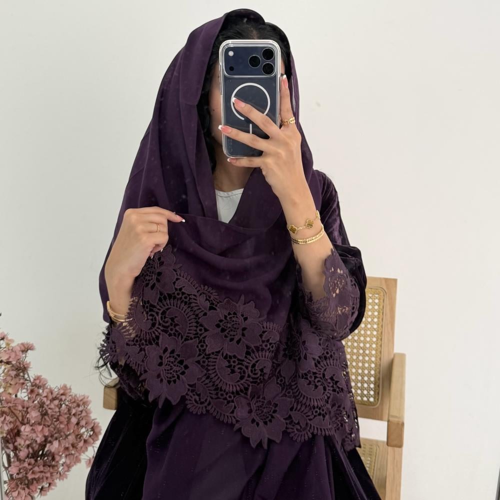 - مخمل كوري موف | الكم ماسك كلفه " غير مبطن " | الطرحه شيفون بطرف كلفه عريضه