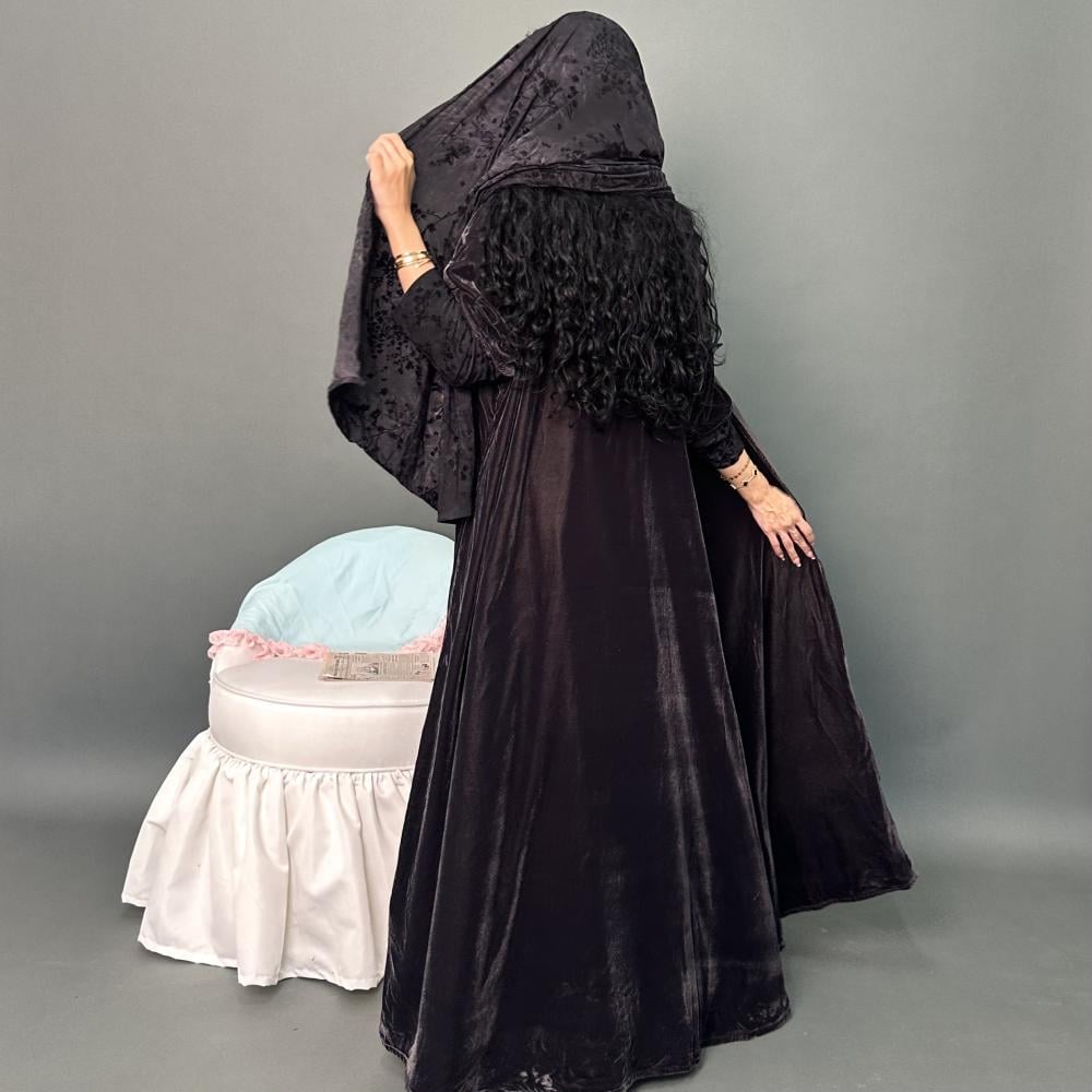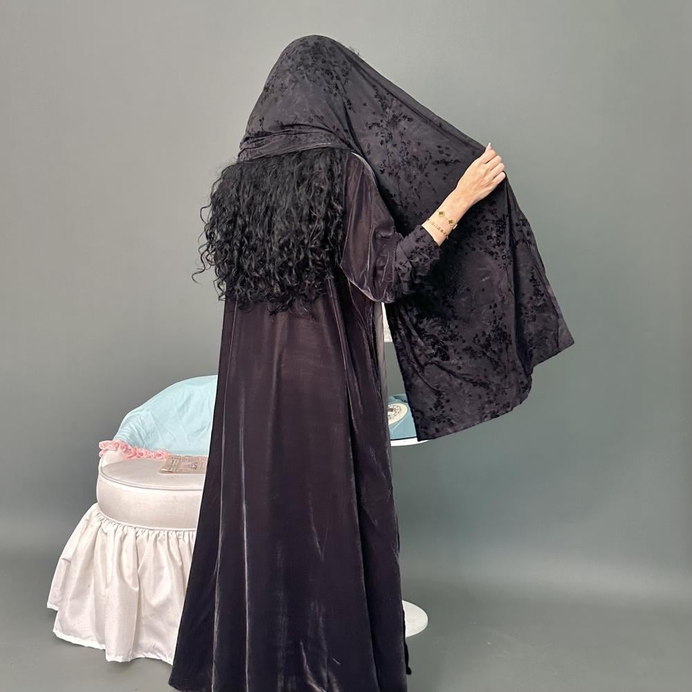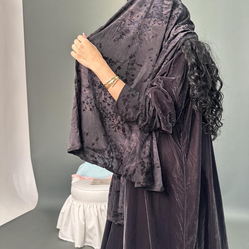 مخمل كوري رمادي غامق | الكم ماسك ستريتش مشجر بمخمل | الطرحه ستريتش مشجر بمخمل