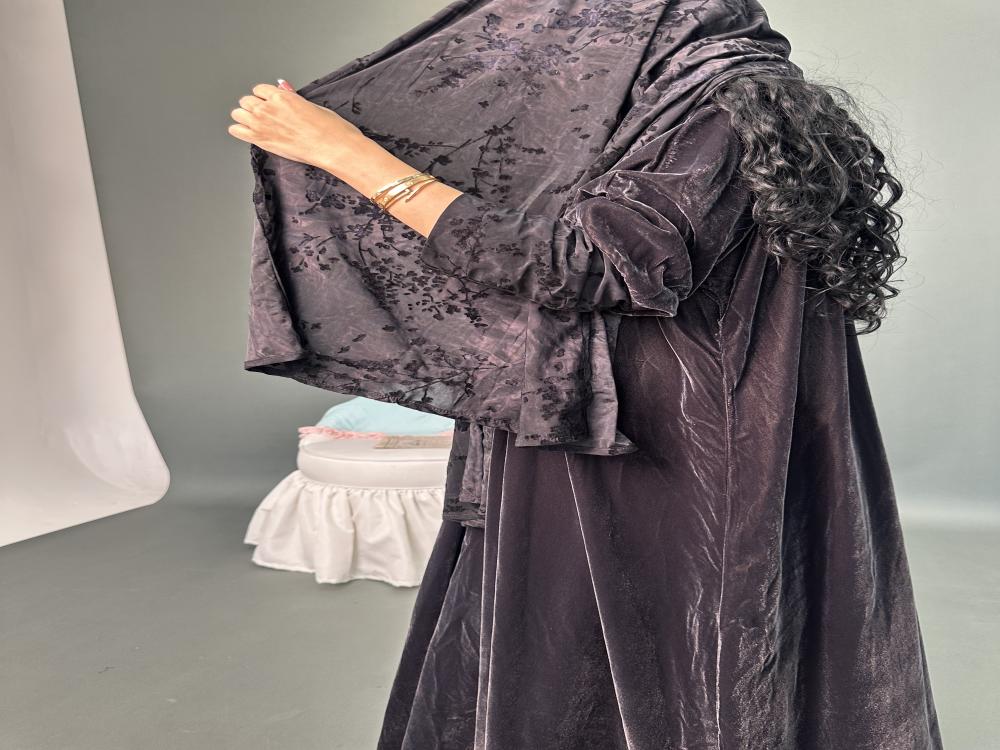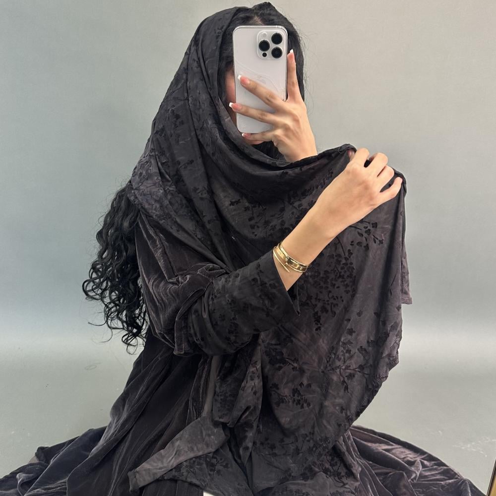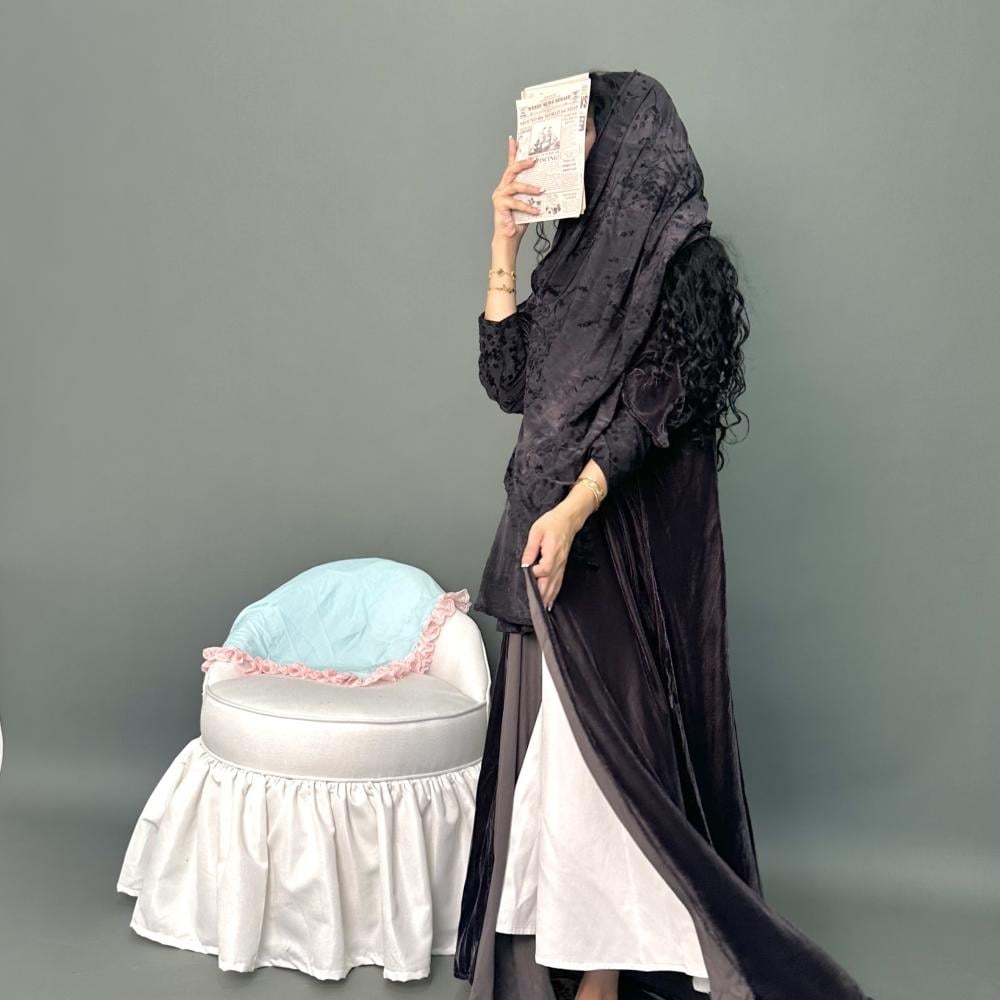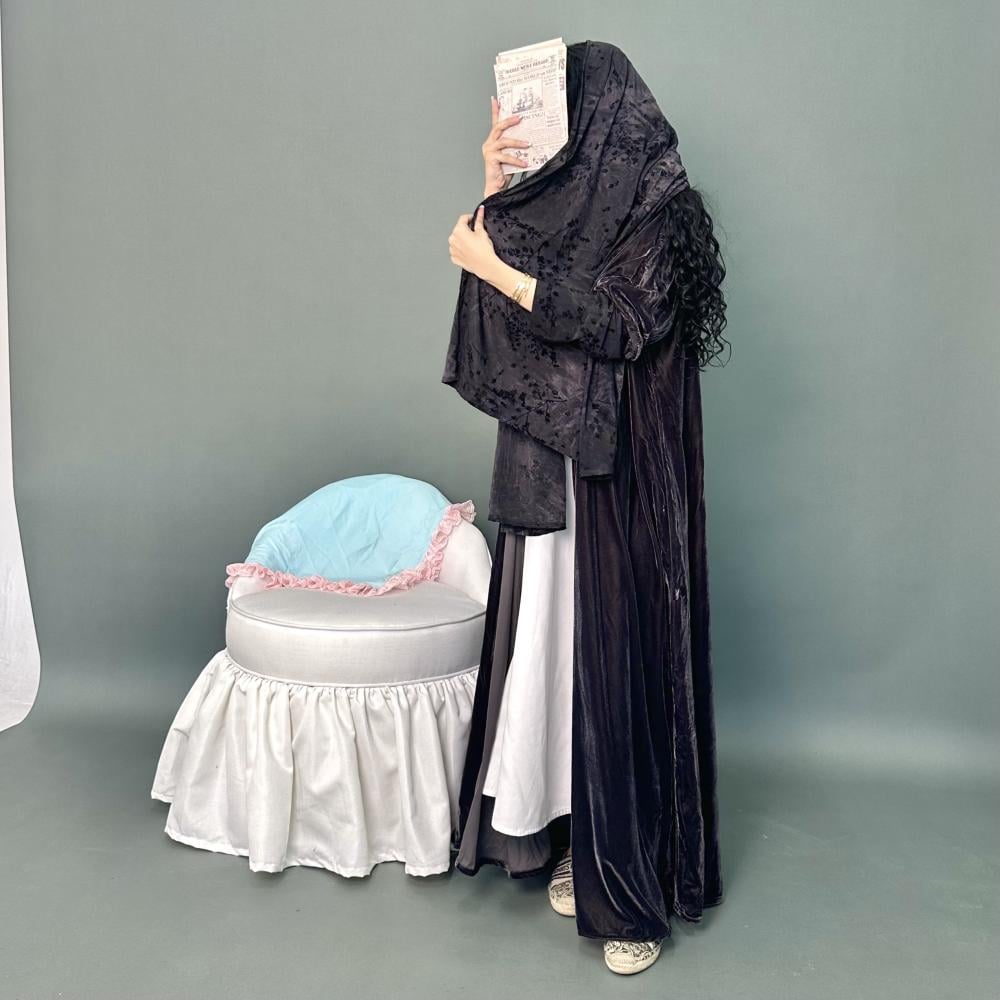 مخمل كوري رمادي غامق | الكم ماسك ستريتش مشجر بمخمل | الطرحه ستريتش مشجر بمخمل