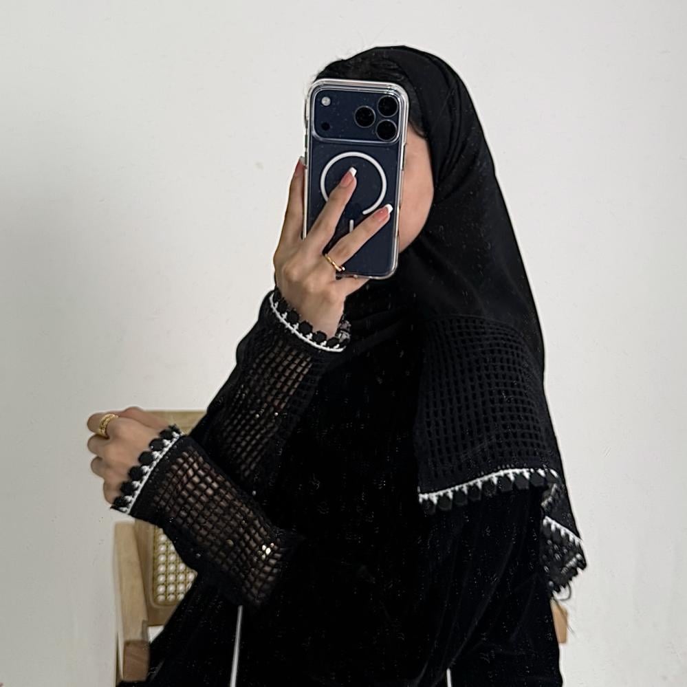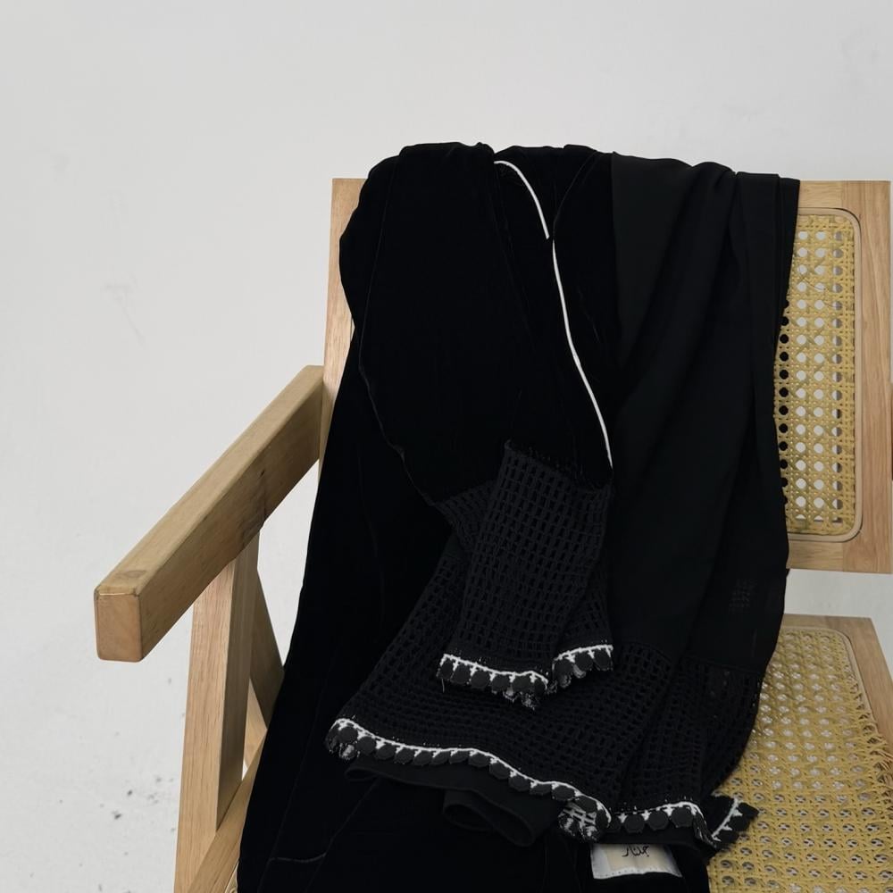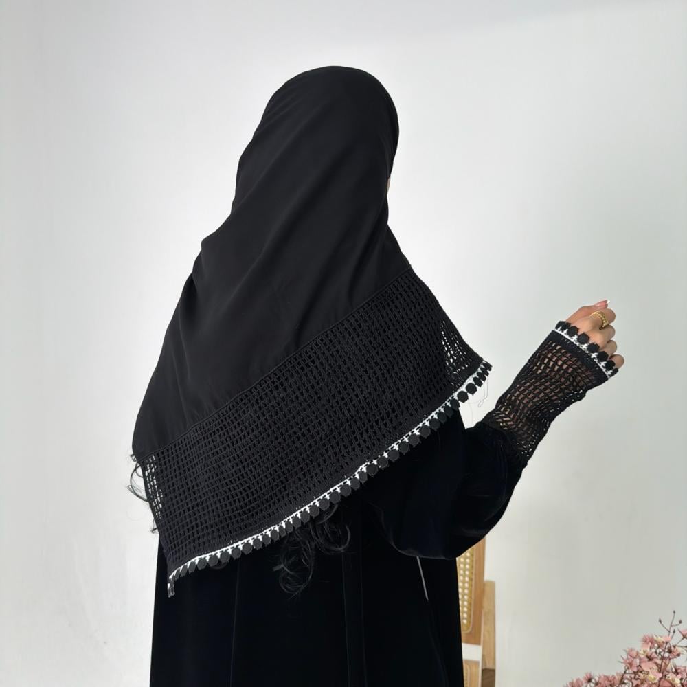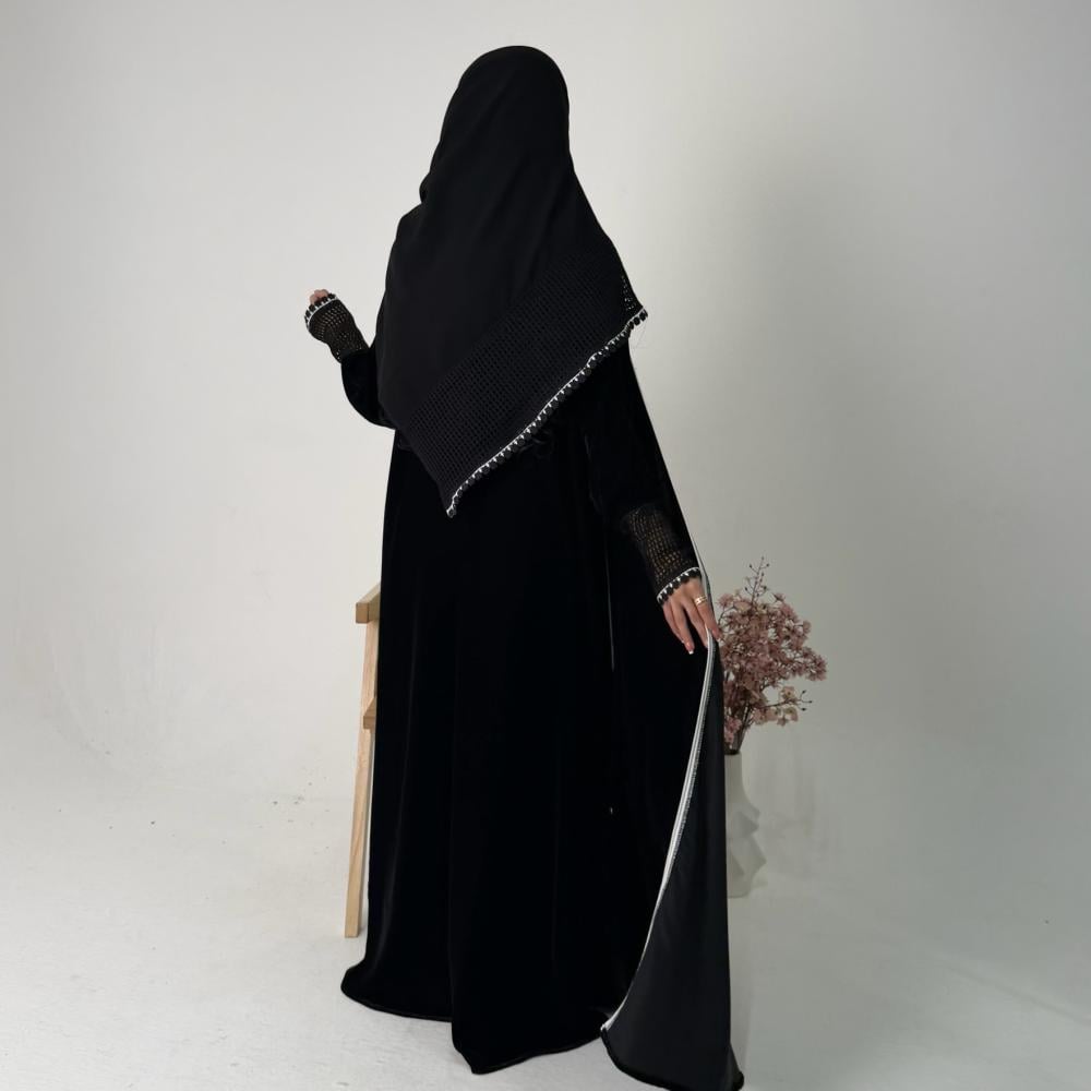 - مخمل كوري اسود | الكم كلفه شبك بطرف " غير مبطن" | الطرحه شيفون بطرف