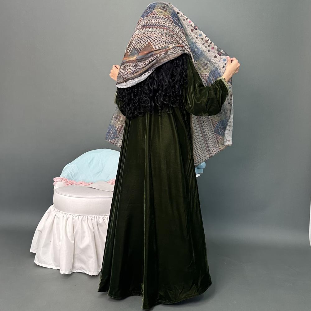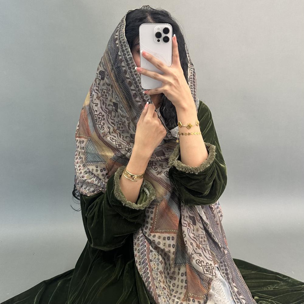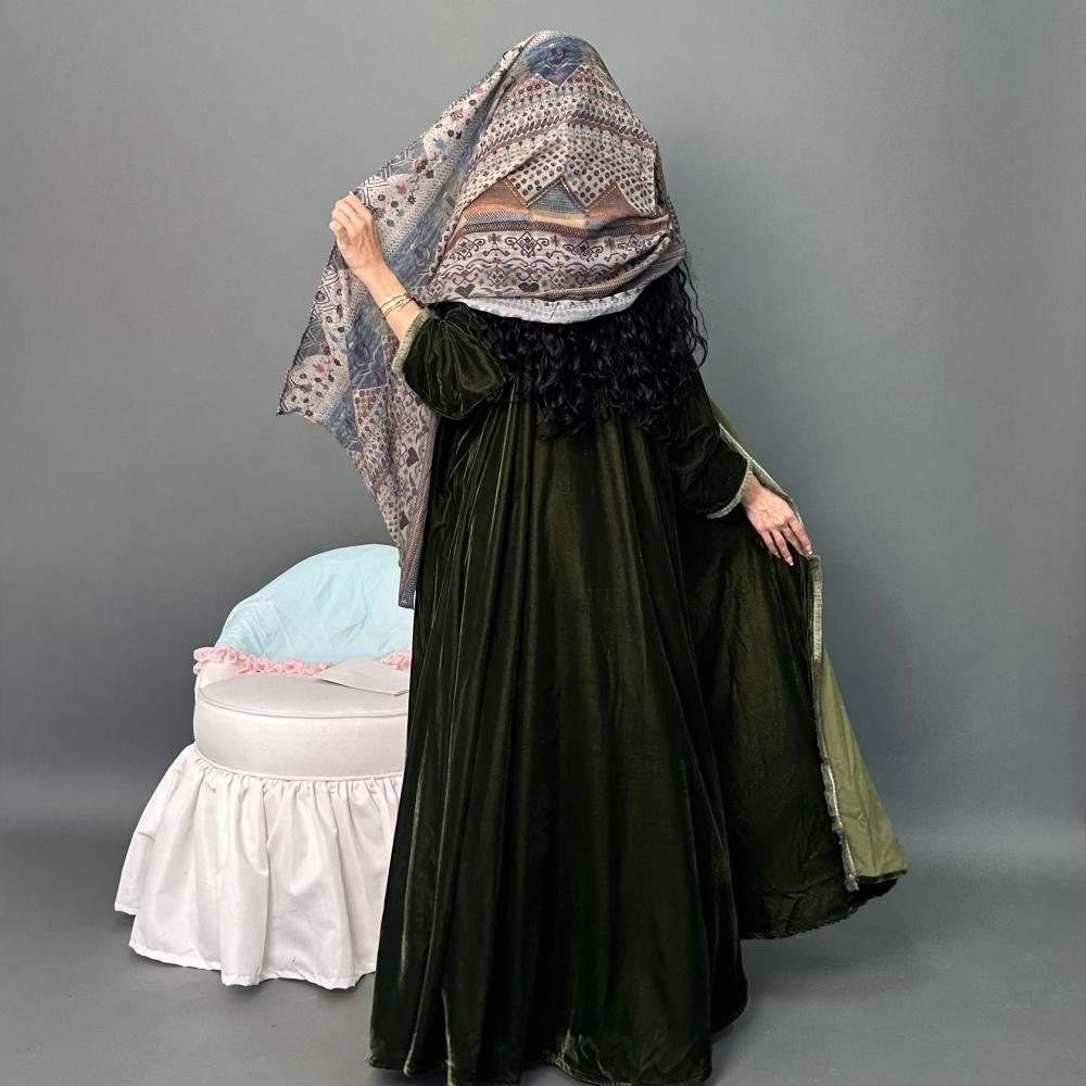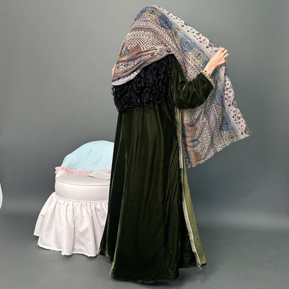 مخمل كوري زيتي | هدب من الاكام وفالاكمام | الطرحه شيفون مشجر بالكامل طباعه
