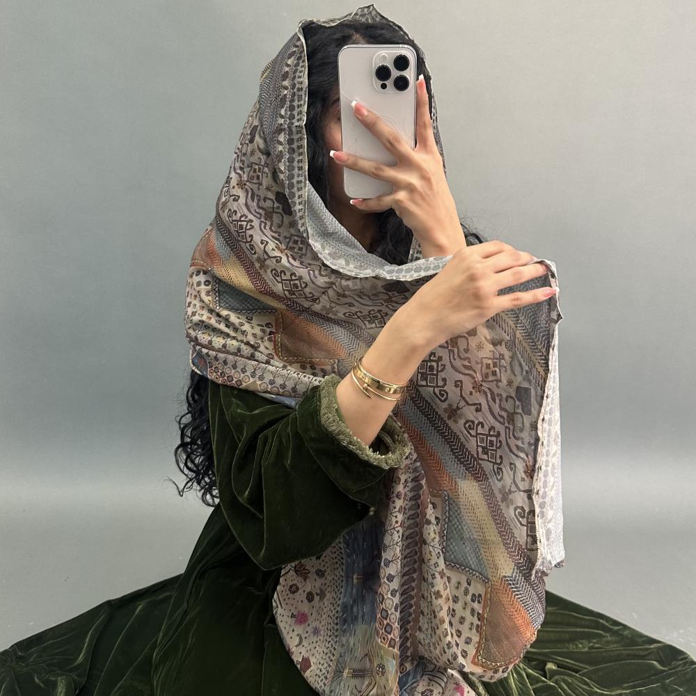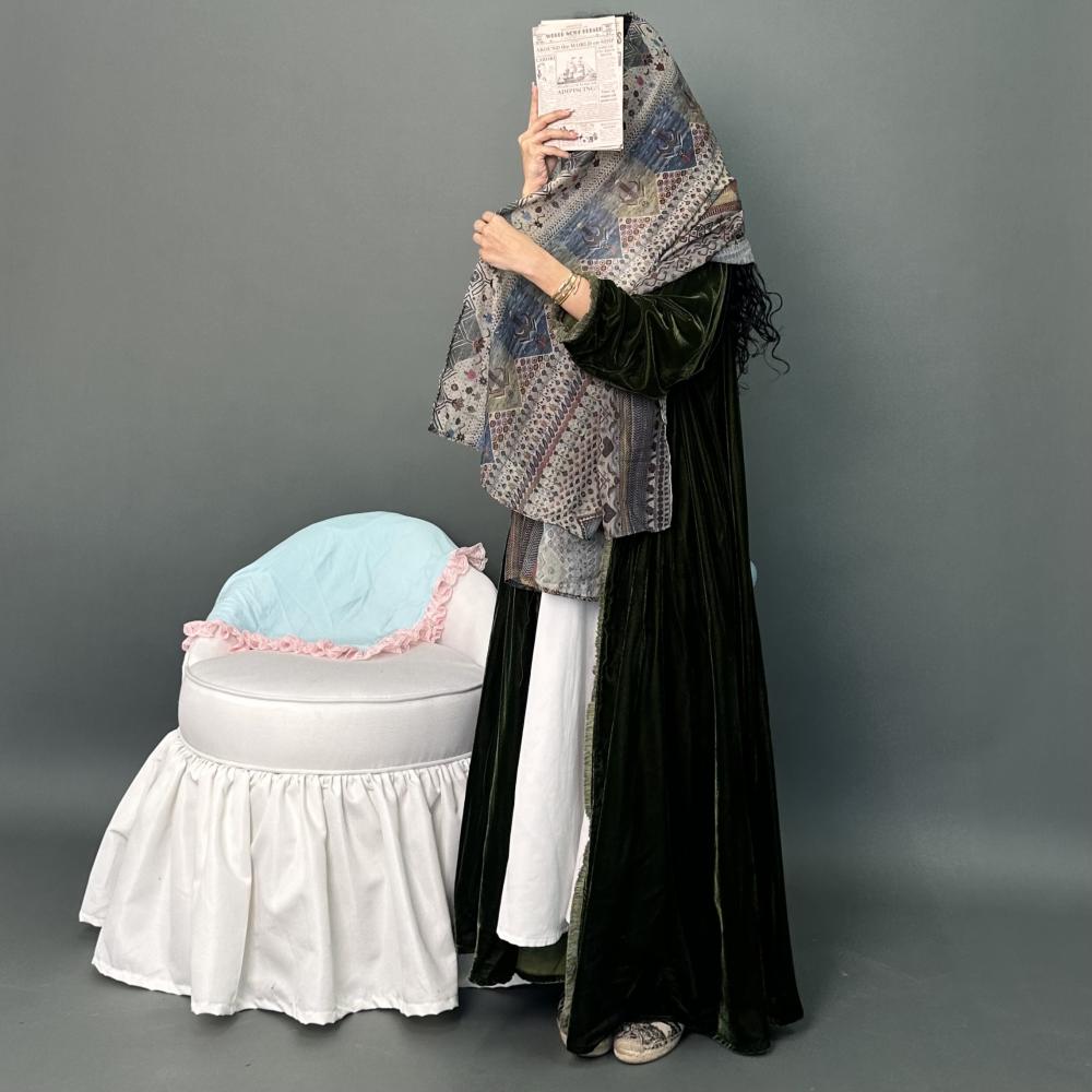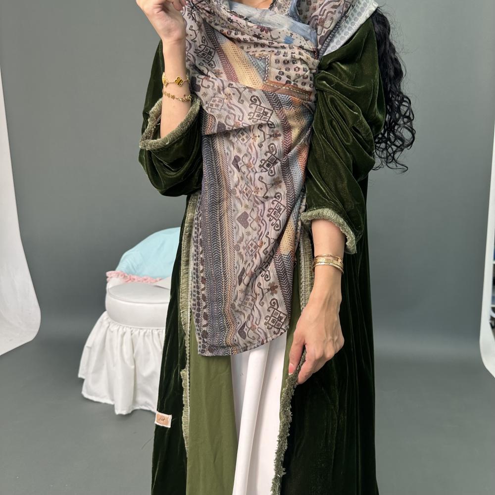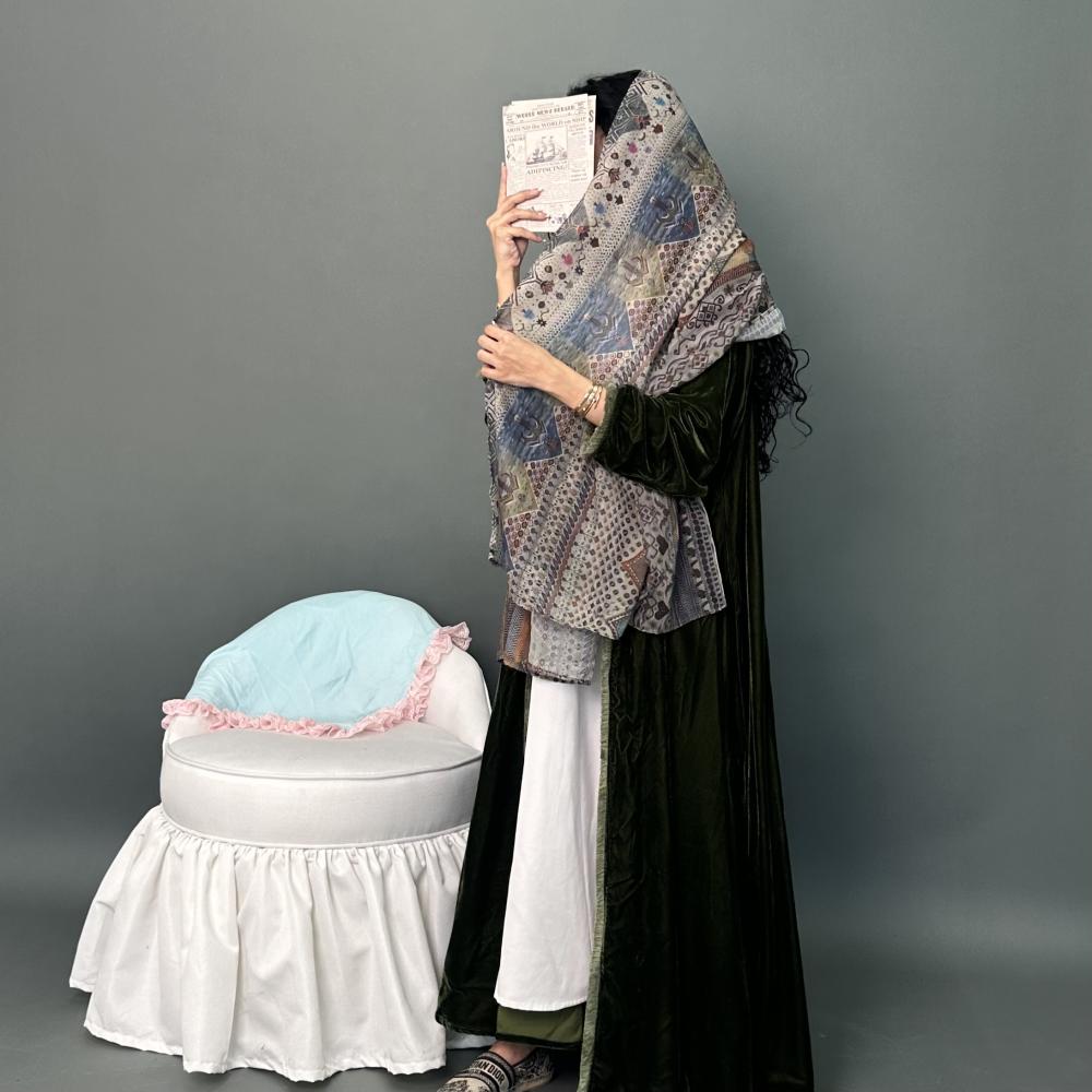 مخمل كوري زيتي | هدب من الاكام وفالاكمام | الطرحه شيفون مشجر بالكامل طباعه
